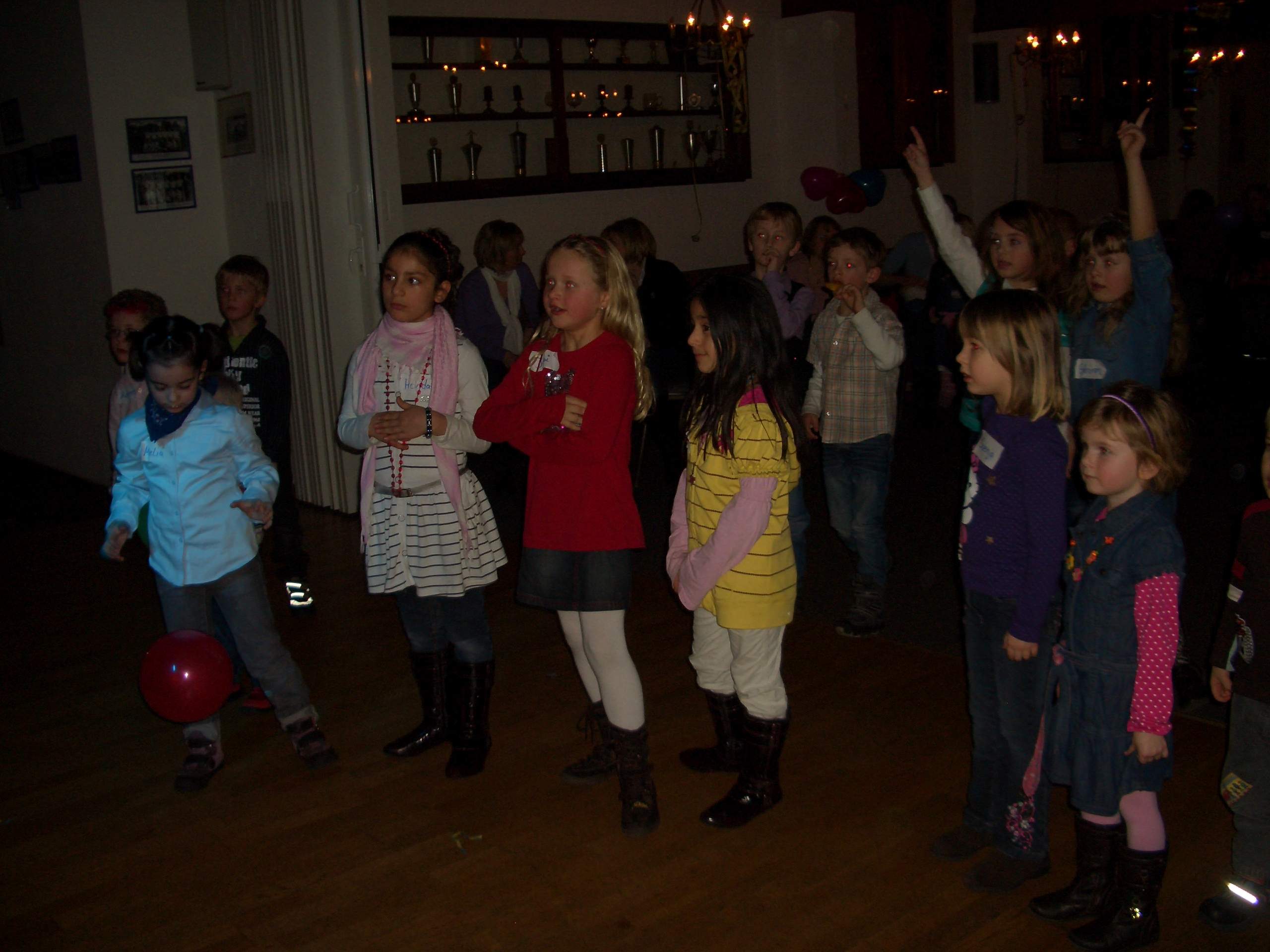 Bei aktuellen Hits und klassischen Kinderliedern tanzten die Kinder und zeigten wie musikalisch sie sind. Auch der ein oder andere Erwachsene konnte (musste) sich auf der Tanzfläche behaupten. In den Verschnaufpausen konnte günstig Kuchen und Getränke gekauft werden. Zusätzlich stand Knabberkram auf den Tischen. Doch die Pausen wurden kurz gehalten, da DJ Andreas immer wieder zu Mit-mach-Spielen und -Tänzen aufforderte. Diesen kamen die Kinder sehr gerne nach. So hatten die Kinder an diesem Abend sehr viel Spass beim Tanzen, Singen und Spielen. | ||