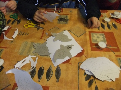 Erst ein Stück an der Straße entlang, dann über Stock und Stein. Ab und zu lauert ein kleines Gespenst im Geäst eines Baumes. Doch das hält einen Trave-Piraten nicht auf. Tapfer geht die Gruppe weiter. Immer wachsam auf der Suche nach dem nächsten Rätsel. Denn diese sind entlang des Weges immer wieder zu finden. Da jeder einen Blick und einen Lichtstrahl seiner Taschenlampe auf die Rätsel werfen möchte, zieht sich die Gruppe auseinander. Aus der Gruppe wird ein Zug, der sich den Weg durch das "Niemandsland" sucht. Doch die Beschwerden des Weges sollen sich lohnen. Denn am Ende des Weges wartet der Schatz. Da jeder das Lösungswort weiß, wird die Beute gerecht aufgeteilt. Mit einer kleinen Tüte und einem Spielzeug gehen die Kinder in den Flur. Dort wartet schon Herr Lenschow mit Suppe, Würstchen und Kinderpunsch. Nach der kleinen Stärkung haben die Kinder noch die Möglichkeit Gespenster-Teelichter zu basteln. Im belebten Flur wird gegessen, getrunken und erzählt. Es ist ein geselliges Beisammensein und ein schöner Abschluss für die Nachtwanderung. Mit der Zeit leert sich der Flur. Die Abenteurer gehen zurück in ihre Unterkünfte. Herr Lenschow hält bis zum Schluss die Stellung. Hier noch ein herzliches "Danke Schön" an ihn, für das anhaltende Engagement für die Kinder. Fotos: Melanie Stehr und Oliver Stehr | ||