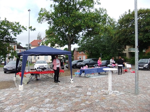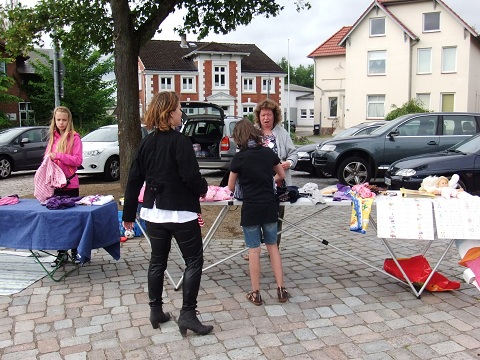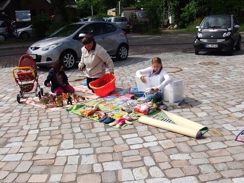 Ein gemütlicher Sonntag Vormittag Am 23.06.13 fand unser zweiter Piraten-Flohmarkt statt. Im Gegensatz zum ersten Flohmarkt spielte das Wetter leider nicht ganz so gut mit. Der Morgen schreckte mit Schauern und viel Wind den einen oder anderen ab, den Weg zum Schlutuper Markt auf sich zu nehmen. Die wenigen, die sich trotzdem trauten, wurden mit Sonne belohnt. Weiterer Regen wurde durch den Wind einfach weggepustet. So waren zwar nicht viele Kinder da, um ihre Sachen zu verkaufen, diese waren aber zufrieden mit ihrem zusätzlichen Taschengeld, dass sie "spielend" dazu verdienten! Unser Kuchen und Kaffee-Angebot wurde von Ausflüglern gern angenommen. So wurde es ein gemütlicher Sonntag Vormittag.